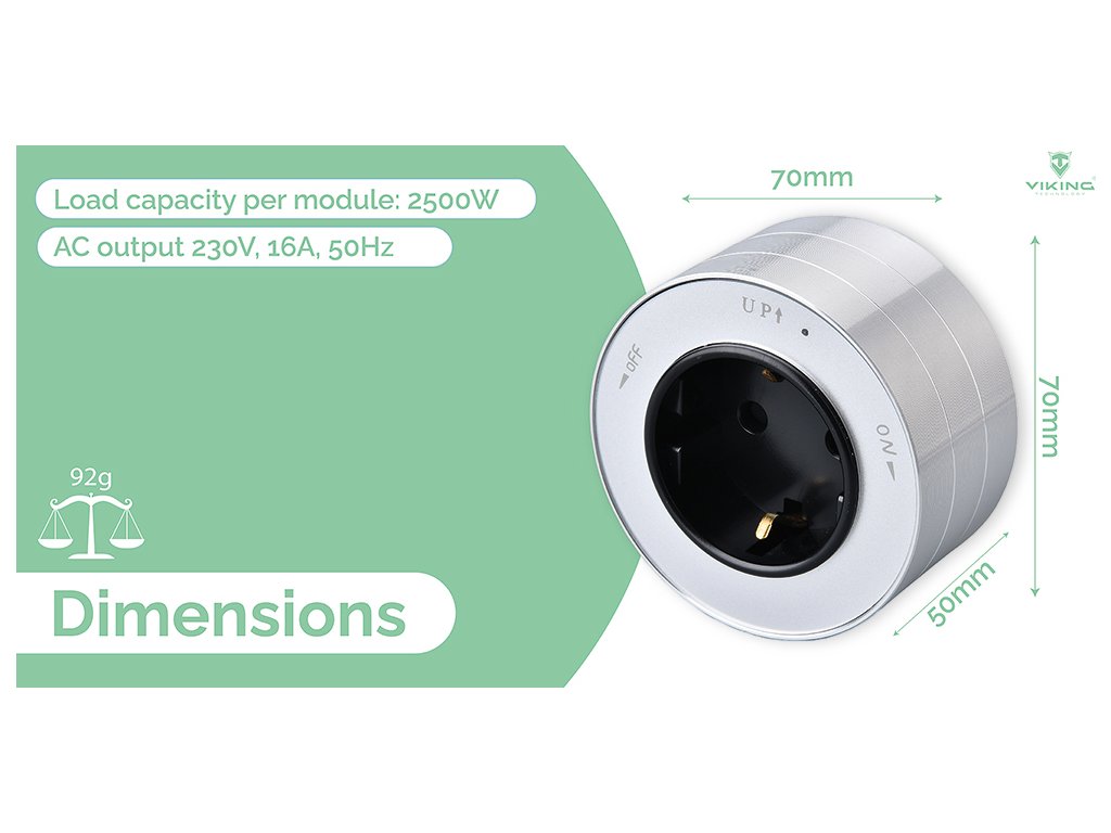 Zásuvkový modul Viking A40S, stříbrná/výstupy - 1xAC/výkon až 2500W/230V,16A,50Hz/Zásuvka typu E