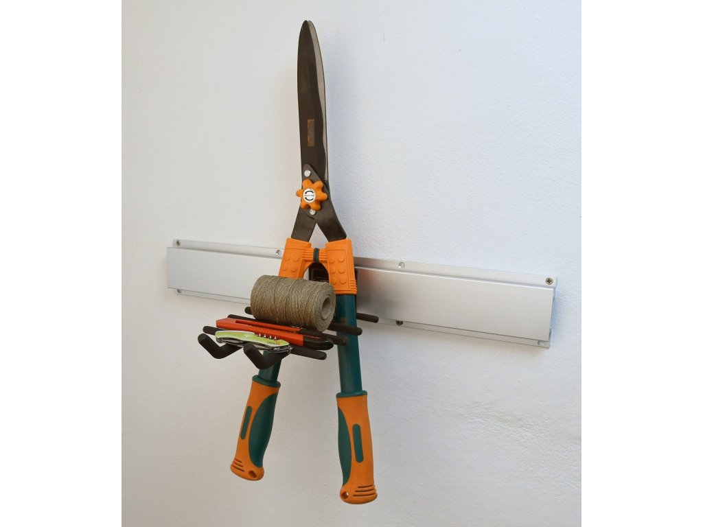 Závěsný prvek pro systém FAST TRACK vhodný k uskladnění drobného nářadí, či jiných menších předmětů.
