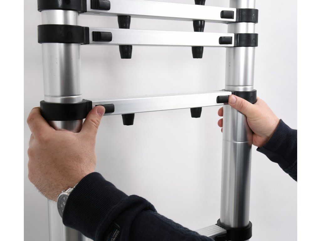 Hliníkový teleskopický žebřík je užitečný pro práci ve výškách, v domácnosti, na zahradě, na skladě, v dílně i na staveništi.