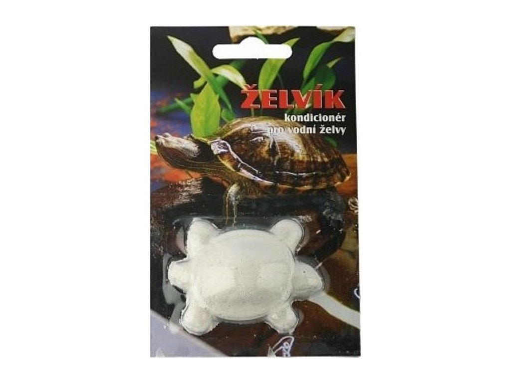Želvík obsahuje látky, které vhodně upravují pH vody na neutrální reakci. Zabraňuje tak překyselení vody v želváriích a vápník, který je postupně při rozpouštění bloku uvolňován, omezuje měknutí želvých krunýřů.Návod na použití: blok umístěte do želvária, kde se začne postupně rozpouštět. Neutralizuje kyseliny želvou vypouštěné do vody a tím upravuje pH. Pro zajištění kvalitního životního prostředí a zvýšení účinnosti bloku doporučujeme denně vyměňovat vodu, zvláště u želv, které jsou krmeny přímo v želváriu.Složení: síran vápenatý, síran hořečnatý, chlorid sodný, vitamín B1.