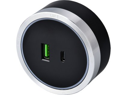 Zásuvkový modul Viking A60SB, stříbrno-černá/výstupy - 1xUSB-A, 1xUSB-C/výkon až 2500W/230V,16A,50Hz