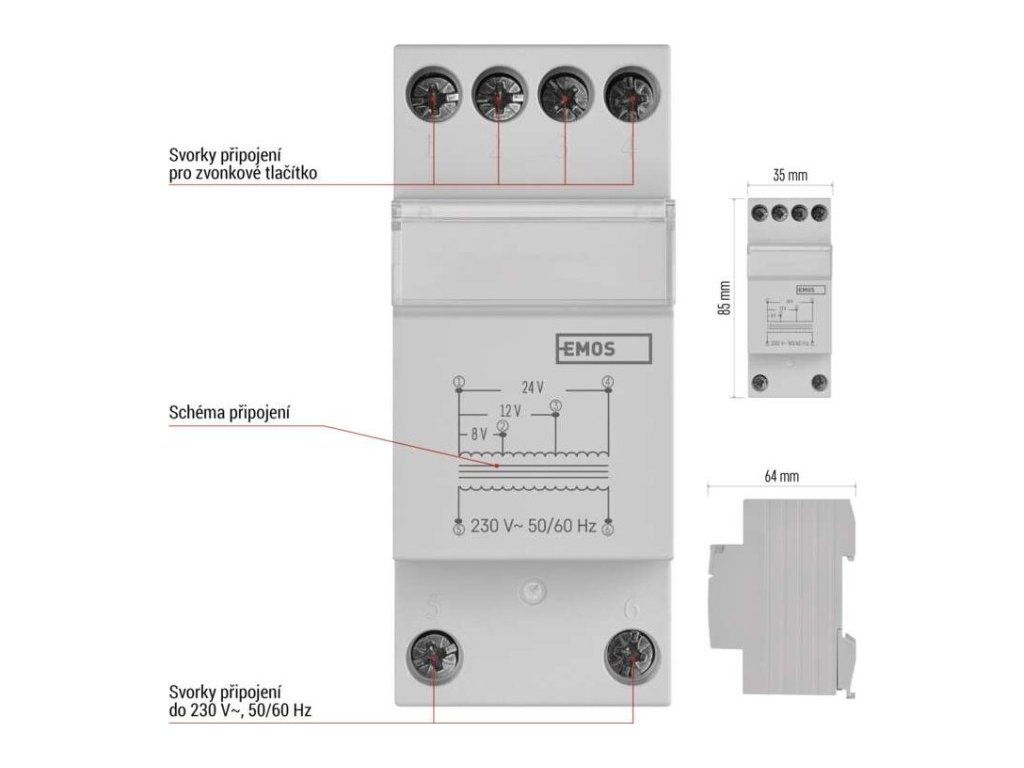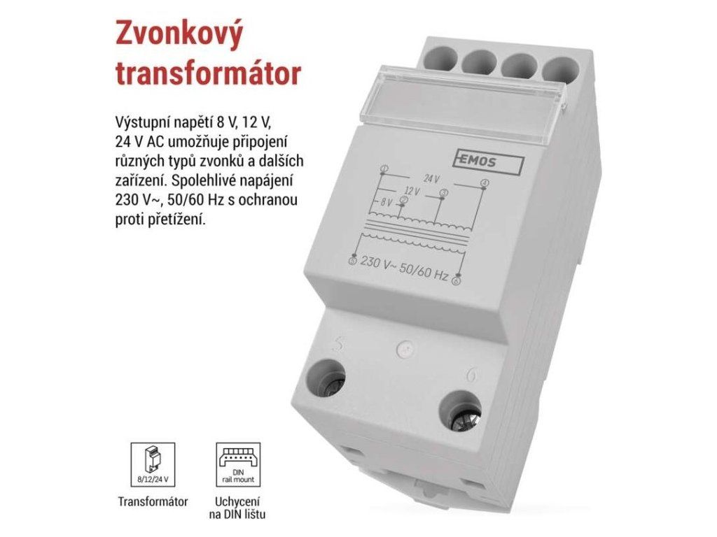 Zvonkový transformátor pro snížení napětí k napájení domovního zvonku.