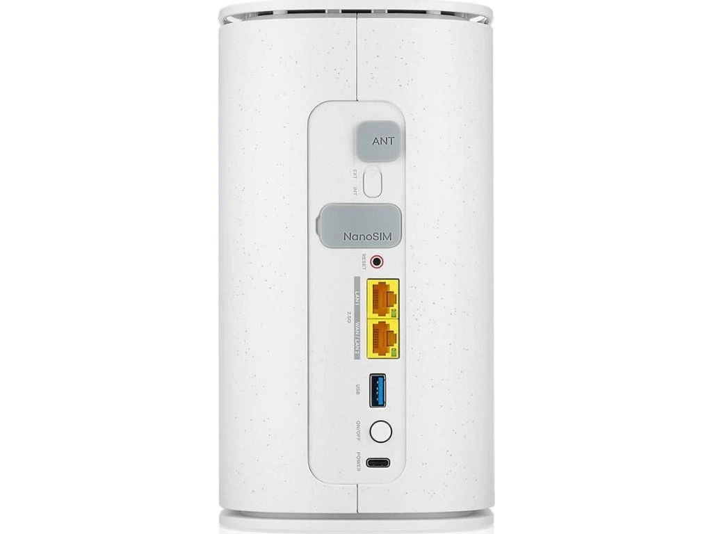 Router podporuje 4G LTE (až 1,6 Gbps) s pásmem FDD B1/B3/B5/B7/B8/B20/B28/B32 a TDD B38/B40/B41/B42/B43. 5G NR pokrývá FDD n1/n3/n7/n8/n20/n28 a TDD n38/n40/n41/n75/n77/n78 s podporou 4×4 MIMO. Obsahuje slot pro Nano SIM kartu (4FF) s push-push mechanismem a přepínač mezi interními a externími anténami.