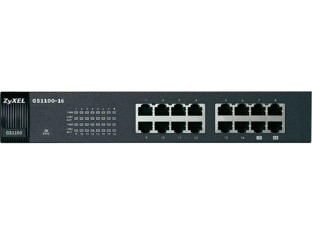 GS1100-16 je switch bez konfiguračních funkcí, který představuje nenákladné řešení, jak podstatně zvýšit rychlost síťové komunikace. GS1100-16 je možné postavit na stůl, namontovat na zeď nebo zasunout do racku a je tak ideálním řešením pro aplikace vyžadující rychlý přenos dat, jako např. přenos fotografií s vysokým rozlišením, video/audio streamování, download a připojení ke skupině serverů.