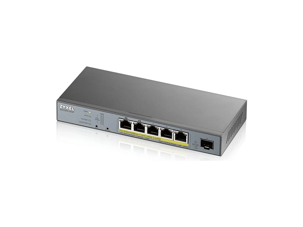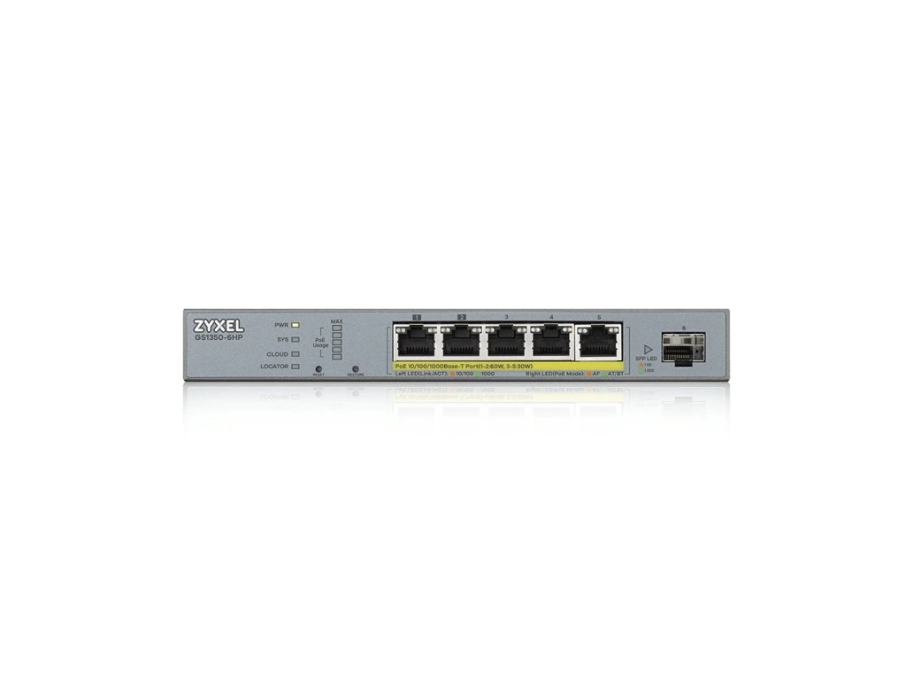 ZyXEL GS1350-6HP, 6 Port managed CCTV PoE switch, long range, 60W, 802.3BT (1 year NCC Pro pack license bundled)