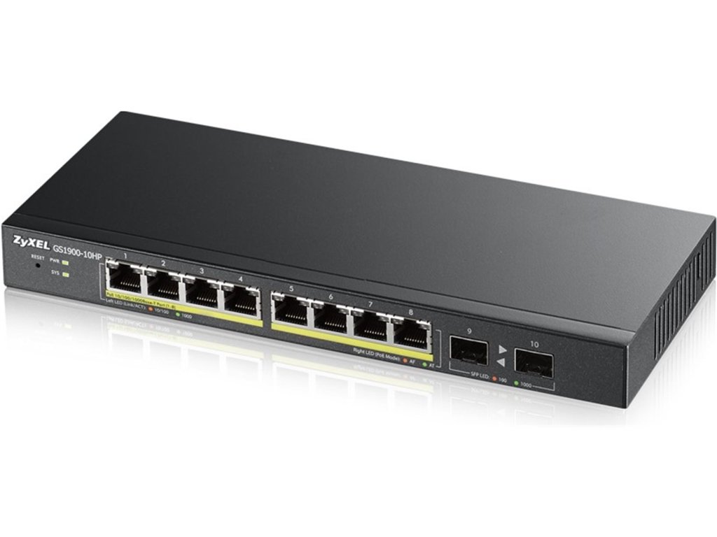 Zyxel GS1900-10HP v2 10-port Desktop Gigabit Web Smart switch: 8x Gigabit metal + 2x SFP, IPv6, 802.3az (Green), PoE