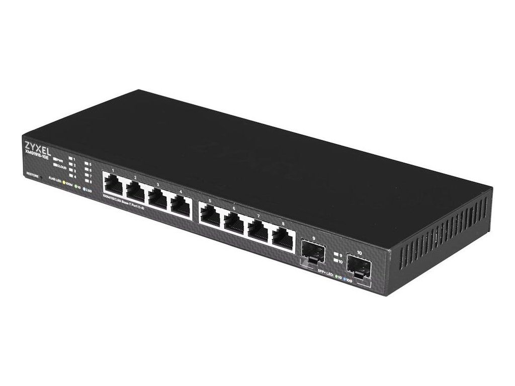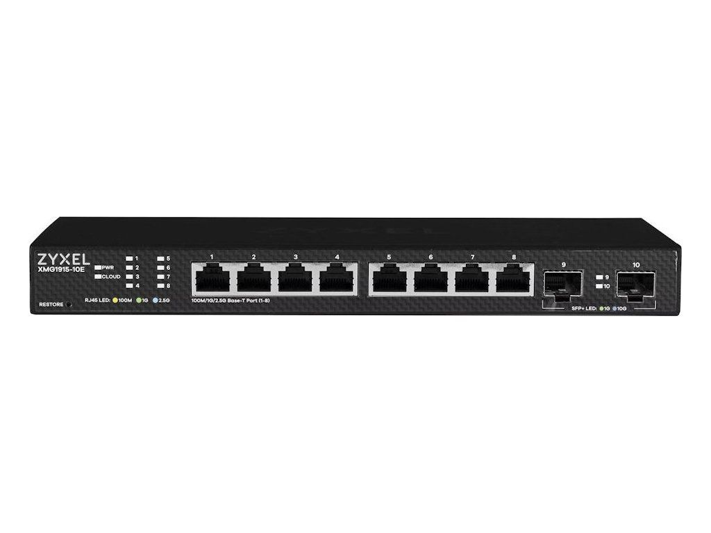 Switch ZyXEL XMG1915-10E představuje cenově dostupné řešení pro upgrade síťové infrastruktury na Multi-Gigabitové rychlosti 2,5 Gb/s. Všech osm portů RJ-45 podporuje automatickou detekci rychlosti 100M/1G/2,5G a umožňuje využít plný potenciál moderních zařízení bez nutnosti výměny kabeláže. Dva 10G SFP+ porty (kompatibilní s 1G SFP) poskytují vysokorychlostní uplink pro připojení serverů nebo propojení s dalšími switchi.