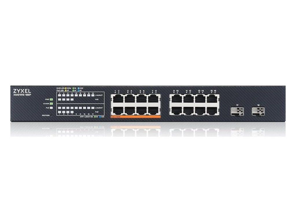Zyxel XMG1915-18EP, 16-port 2.5GbE, 2 SFP+, 8 x PoE++ 180W Smart Switch, hybird mode, standalone or NebulaFlex Cloud